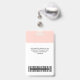 Personnalisez facilement ce badge de nom d'employé pastel rose pâle avec photo, code de barre de numérisation et logo d'entreprise. Un design d'entreprise simple en couleurs standard rose et blanc girly entièrement personnalisable en tailles avant et arrière, fontes sans-serif basiques et modernes et un look professionnel et clair. Disponible avec cordon, clip métallique ou avec rétractable. Pas de commande minimum.