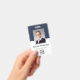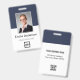 Personnalisez facilement ce nom d'employé bleu personnalisé et badge photo avec votre propre logo d'entreprise et code qr ou code à barres. Disponible avec différentes couleurs et pièces jointes arrière - plans. Pas de quantité minimale de commande.