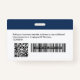 Personnalisez facilement ce badge personnalisé de nom d'employé avec photo, code Qr, code de barre d'analyse et logo d'entreprise, avec le cordon inclus. Un design d'entreprise simple en bleu marine et blanc entièrement personnalisable en tailles avant et arrière, sans-serif polices de base et moderne et un look professionnel et clair. Disponible avec ou sans nacelle, clip métallique ou avec rétractable. Pas de commande minimum.