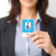 Personnalisez facilement ce badge personnalisé de nom d'employé avec photo, scanner le code QR et le logo de l'entreprise. Un design d'entreprise simple en bleu marine et blanc entièrement personnalisable en tailles avant et arrière, sans-serif polices de base et moderne et un look professionnel et clair. Disponible avec cordon, clip métallique ou avec rétractable. Pas de commande minimum.