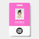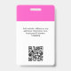 Personnalisez facilement ce badge personnalisé de nom d'employé avec Photo, Scan Qr Code (toujours lisible, ça marche !) et logo d'entreprise. Un design d'entreprise simple dans les couleurs modernes rose et blanc néon entièrement personnalisable en tailles avant et arrière, sans-serif polices de base et moderne et un look professionnel et clair. Disponible avec cordon, clip métallique ou avec rétractable. Pas de commande minimum.