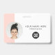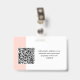 Personnalisez facilement ce badge de nom d'employé minimaliste horizontal personnalisé avec photo, code Qr ou code de barre d'analyse et logo d'entreprise. Un design d'entreprise simple avec photo ronde, dans des couleurs chic et blush rose et blanc entièrement personnalisable en tailles avant et arrière, sans-serif polices basiques et modernes et un look professionnel et clair. Disponible avec cordon, clip métallique ou avec rétractable. Pas de commande minimum.