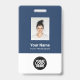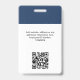 Personnalisez facilement ce badge personnalisé de nom d'employé avec Photo, Scan Qr Code (toujours lisible, ça marche !) et logo d'entreprise. Un design d'entreprise simple en bleu marine et blanc entièrement personnalisable en tailles avant et arrière, sans-serif polices de base et moderne et un look professionnel et clair. Disponible avec cordon, clip métallique ou avec rétractable. Pas de commande minimum.