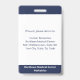 Gardez votre hôpital ou votre cabinet médical en sécurité avec des badges photo personnalisés avec la photo de votre employé, le nom, le titre de l'emploi et le numéro d'identification, ainsi que le nom de l'entreprise. Vous pouvez également inclure un département si vous le souhaitez. Parfait pour une infirmière ou un autre personnel. Au verso, vous pouvez ajouter plus d'informations, par exemple où retourner le badge s'il se perd. Customisez-le avec une photo et du texte personnalisé dans la barre latérale. La photo carré a une fine bordure blanche sur un arrière - plan bleu marine. Une bande blanche située près du bas met en surbrillance le titre du travail, le numéro d'identification et la date d'expiration dans le texte bleu foncé. Le nom du personnel et le texte de l'hôpital ou de l'entreprise sont blancs sur bleu foncé. Vous pouvez modifier les couleurs de l'arrière - plan et du texte pour qu'elles correspondent à votre marque en appuyant sur "cliquer pour customiser plus loin". Vous pouvez également ajouter un clip métallique, une longe ou une pièce jointe rétractable dans la barre latérale. Voir d'autres badges d'identité dans la collection Rocklawn Arts. Copyright ©Claire E. Skinner. Tous droits réservés.