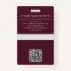Améliorez votre identification professionnelle grâce à ce badge personnalisé. Conçu pour les professionnels d'affaires, les gestionnaires et les membres de l'équipe, ce badge élégant et moderne assure une identification claire tout en incorporant une touche de sophistication. Caractéristiques : (1) Avant : Affichez votre nom, titre, nom d'entreprise et une photo professionnelle pour faciliter votre reconnaissance. (2) Précédent : Inclut les coordonnées et un code QR numérisable pour un accès rapide à votre site Web, à votre portefeuille ou à votre profil professionnel. (3) Maroon élégant, gris et blanc avec typographie propre pour un look poli et professionnel. (4) Idéal pour les conférences, les événements d'entreprise ou les bureaux quotidiens.