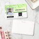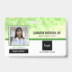 Ce badge personnel médical personnalisé offre un cadre photo, un cadre logo et un cadre de code barre. Le design est des accents avec un motif géométrique vert clair dans l'arrière - plan.