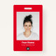 Personnalisez facilement ce badge personnalisé de nom d'employé avec photo, code de barre d'analyse et logo d'entreprise. Un design d'entreprise simple dans des couleurs rouges et blanches qui s'accordent parfaitement, entièrement personnalisable dans les tailles avant et arrière, sans-serif polices de base et moderne et un look professionnel et clair. Disponible avec cordon, clip métallique ou avec rétractable. Pas de commande minimum.