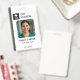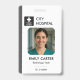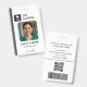 Un modèle d'badge médical moderne avec une couleur gris propre, avec espace pour votre photo, nom, titre de travail, numéro d'identification et logo personnalisé. Conçu pour être polyvalent pour les techniciens médicaux, le personnel de laboratoire, les équipes de radiologie, les infirmières et les employés de soutien hospitalier. L'arrière comprend des espaces réservés pour un code à barres, un code QR, et des informations de contact perdues et trouvées pour une fonctionnalité et une sécurité supplémentaires. Parfait pour les hôpitaux, les cliniques, les laboratoires et les organismes de soins de santé qui ont besoin d'une identification personnalisée du personnel professionnel.