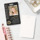 Créez une apparence professionnelle avec ce badge Notaire Public ID. Un modèle élégant avec un stylo plume et un symbole en forme de sceau. Ce modèle est personnalisé avec votre photo d'identité, nom, informations et un code QR. Parfait pour un notaire public, un agent de signature de prêt, un agent de livraison certifié de fiducie de notaire, l'ACNT, un notaire mobile, un appostille ou toute autre profession juridique. Couleurs imprimées : éléments de couleur noir, blanc et or. Magasinez la collection en ligne pour des idées et des fournitures de produits plus populaires, conçus pour les notaires!