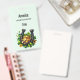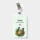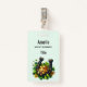 Insigne de nom avec une image sur le thème de la Saint Patrick. Un fer à cheval noir et or assis dans un lit de trèfle vert avec des pièces d'or brillantes.