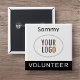 Personnalisez facilement notre badge de nom de carré avec le logo de votre organisation, le nom du bénévole ou tout autre texte personnalisé. Il s'attache avec une broche de sécurité. Vendu en noir et autres couleurs, et toutes les couleurs sont personnalisables. Nos boutons carrés sont 2 pouces x 2 pouces. Fabriquée aux États-Unis. Pas de quantité minimale de commande et pas de frais de configuration.