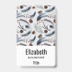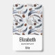 badge de nom personnalisé avec un beau motif. Cônes de pin, plumes, aiguilles de pin et gerbes de baies. Design rustique aquarelle.