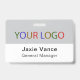 Easily personalize our professional hard plastic name badge with your own company logo, employee name, job title, or other custom text. It's made of durable PVC plastic. Designed in mint green and other colors with a modern minimalist design by Charmed Treasure Store. All colors are customizable. Available with a lanyard, metal clip, or retractable reel. The dimensions are 3.38 inch x 2.13 inch. No minimum order quantity and no setup fee. All orders are fulfilled by Zazzle on Zazzle products. Charmed Treasure Store does NOT have your customization, shipping, or credit card information so contact Zazzle directly for any questions including questions about customizing your design.