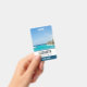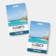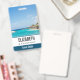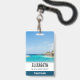 badge de nom personnalisé avec une belle photo représentant une station balnéaire tropicale. Jolie plage de sable blanc et d'eau bleue avec des paillotes, ce qui lui donne une ambiance insulaire tranquille.