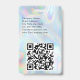 Un design moderne minimaliste avec une police élégante pour le nom personnalisé et les informations sur l'événement. Police noire classique avec vos détails sur un chic arrière - plan arc-en-ciel holographique Mylar. Le badge de nom peut être customisé avec votre nom, les coordonnées et les poignées de médias sociaux. Le code QR peut être customisé pour accéder directement à votre site Web. Debra Valencia, une visionnaire artiste motif de surface, créatrice de produits et entrepreneure passionnée par le voyage dans le monde, les traditions artisanales, le pop art et la mode, a marqué un style californien unique. Ses produits chic et colorés se retrouvent sur le marché du style de vie sous licence, ce qui plaît aux femmes qui aiment le style, la mode et la féminité. La marque a obtenu une licence auprès de plus de 50 fabricants de cadeaux, de papeterie, d'artisanat, de textiles, de décoration de maison, d'accessoires de mode et de beauté. Pour plus d'informations sur les produits, les classes et les services de conception de Debra, contactez www.debravalencia.com