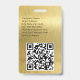 Un design moderne minimaliste avec une police élégante pour le nom personnalisé et les informations sur l'événement. Police noire classique avec vos détails sur un fond métallisé doré brossé chic. Le badge nominatif peut être personnalisé avec votre nom, vos coordonnées et vos identifiants de réseaux sociaux. Le code QR peut être personnalisé pour diriger vers votre site web.