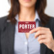 Insignes faits sur commande de portier. Customisez-la avec votre propre couleur des textes et d'arrière - plan.