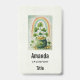 Étiquette nominative avec une image saisonnière de la Saint-Patrick. Papier de style grunge délavé. Un pot vert d'or avec des pièces qui se déversent sur le sol. Un arc-en-ciel coloré au-dessus et des trèfles qui poussent tout autour.
