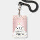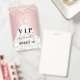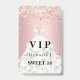 Un badge moderne, élégant et glamour pour une fête d'anniversaire Sweet 16, 16 ans. Un fond dégradé rose poudré avec une fausse poussière de rose en glitter doré. Avec le texte : VIP. Personnalisez et ajoutez le nom, l'âge, l'adresse/date. Le nom est écrit avec une police manuscrite moderne avec des fioritures.