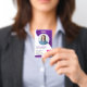 Créez un badge d'identification professionnel et élégant pour les infirmières praticiennes. Ce modèle personnalisable présente un design moderne violet, parfait pour les hôpitaux, les cliniques et les établissements de santé. Personnalisez facilement votre photo, votre nom, votre titre (infirmière praticienne NP), votre numéro d'identification, votre emplacement, et plus encore. Ajoutez un code barre à l'arrière pour une sécurité renforcée. La disposition propre assure que toutes les informations vitales sont clairement affichées. Ce modèle est aussi facilement adaptable pour les autres professionnels de la santé. Il vous suffit d'ajuster les champs de texte pour refléter votre rôle et vos informations spécifiques.