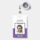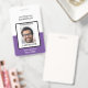 Badge de nom de l'école de photo violet et blanc. Professeur, Administrateur. Personnaliser.