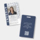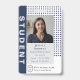 Simple, élégant badge d'identification pour les étudiants et le personnel enseignant qui peut être facilement personnalisé avec la photo d'identité de votre employé, son nom et sa fonction. Le design élégant présente une mise en page minimaliste moderne et une bannière de bloc en gris pierre pour donner une identité claire aux écoles, collèges et universités.