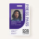 badge de presse photo moderne et tendance. Notre design se compose d'un design moderne et tendance aux courbes violettes. Personnaliser avec photo, nom, logo, date d'expiration et date de validité ainsi que numéro d'identification de l'employé facultatif. L'envers présente un design tendance à trois couleurs incurvées (les couleurs peuvent être changées pour convenir à votre marque).