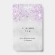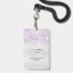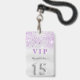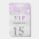 Un badge moderne, élégant et glamour pour Quinceañera, 15e anniversaire de naissance d'une fille. Un arrière - plan chic faux argent à la fausse parties scintillant couleur lavande. Le nom est écrit avec un script de style moderne écrit à la main. Avec le texte : VIP Numéro 15 est écrit avec une police de style ballon, script. Retour : date de la fête et adresse du lieu.