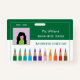 Un badge horizontal vert et blanc avec des crayons de couleur arc-en-ciel en bas. Ce badge de conception professionnelle est parfait pour les enseignants de maternelle, maternelle, primaire, intermédiaire ou secondaire . Il peut être adapté à tout autre membre du personnel de l'école. Il est disponible en plusieurs couleurs et est également disponible en format vertical. Consultez la collection pour en savoir plus. © ArianeC Illustrations-Tous droits réservés