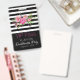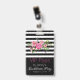 Insigne accessoire de partie élégante de bachelorette fait dans un motif rayé noir et blanc, à travers le dessus avec les fleurs assez roses. La moitié inférieure de l'insigne est faite dans le noir solide. Le texte fait sur commande rose et blanc est prêt à personnaliser pour votre événement. Grand pour des fêtes d'anniversaire, des parties de bachelorette, le bonbon 16 et plus.