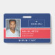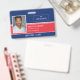 Badge d'employé de l'hôpital ou de la maison de soins infirmiers avec un arrière - plan rouge et bleu. Ajoutez une photo de l'employé avec le nom et la profession. Personnalisez davantage avec votre logo d'entreprise.