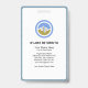Un design de guillemet avec des lunettes de soleil bleues élégantes est encapsulé par une bordure bleu clair sur les rebords extérieurs du badge.