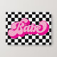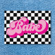 Créez votre propre typographie "Babe" rose et rose chaud de style rétro contre un motif de damier personnalisable sur un bouton de bascule rectangulaire pour votre fête de bachelorette. Vous pouvez modifier les quatre couleurs des graphiques vectoriels pour qu'elles correspondent aux couleurs de la palette mariage. Customisez avec le texte du système pour créer votre propre design personnalisé.