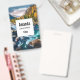 Nom tag avec une photo pittoresque montrant des montagnes couvertes d'arbres aux couleurs de l'automne. Une rivière animée s'écoule autour d'une multitude de rochers.