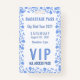 Un laissez-passer VIP pour la table d'hôtes annonçant votre événement avec un retour en blanc pour écrire le nom et le numéro de table de votre invité. L'insigne est en plastique, donc un marqueur permanent comme une fine pointe Sharpee est recommandé, et chaque insigne doit sécher complètement avant de manipuler.