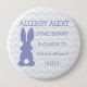Bouton personnalisé de silhouette de lapin de Pâques d'alerte d'allergie alimentaire. Éditez le texte pour énumérer les allergènes de votre enfant. Veillez d'autres pour savoir pour ne pas alimenter votre enfant tandis que vous êtes aux parties de Pâques et aux chasses à oeufs. Alerte d'allergie alimentaire avec la pleine personnalisation. Silhouette pourpre de lapin avec l'arrière - plan pourpre de chevron. Le lapin a la queue pelucheuse blanche. Voir les nos autres articles coordonnés de Pâques. Les conceptions de l'allergie de Lil préconise www.lilallergyadvocates.com