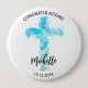 Badge Rond 10 Cm Aquarelle bleue Croix chrétienne Baptême