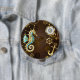 Badge Rond 10 Cm Arrière - plan en bois avec cheval de mer mécaniqu