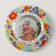Celebrate a loved family member or friend with this round photograph button featuring a whimsical and bright painterly wild flower pattern on warm creamy ivory with easily edited text to memorialize a very special person or moment in life.