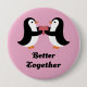 Badge Rond 10 Cm Cute Penguins Better Together Pink Heart Love