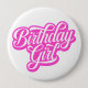 Badge Rond 10 Cm Fille d'anniversaire rose