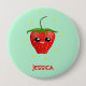 Badge Rond 10 Cm Fruit Monogram kawaii sur turquoise