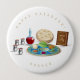 Bouton de Pâque Joyeux avec le texte de voeux "Pâque Joyeuse" & "KOSHER", Pâque - Pesach - en hébreu, cadre Vintage fleuri, Plaque de Pâque traditionnelle juive pour cérémonie de séder, assiette de pesach. Plaque de séder de Pâque avec six symboles illustration. Matzah - Pain traditionnel juif pour la cérémonie de séder Pâque, assiette de pesach. Bouteille de vin rouge et quatre vinaigrettes, "Kiddush cup", livre de prières. Accessoires > Boutons et patchs > Boutons. Conception avec modèle texte. Personnalisez-les en ajoutant un nom ou un texte de voeux.