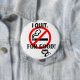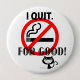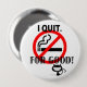 "J'ai arrêté de fumer pour de bon" est le texte sur ce produit qui montre un signe non fumeur en rouge avec les mots "J'ai arrêté" en noir au-dessus du signe et "pour de bon!" superposé au bas du panneau. Un chat noir grinçant en bas à droite accompagne l'image pour fournir une langue humoristique en réaction ironique à toute l'idée d'avoir démissionné. Avez-vous vraiment démissionné ou pas ?