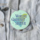 Il s'agit d'un design original et amusant de style rétro dans les tons verts et bleus. Une forme géométrique audacieuse appuie du texte funky en lisant la plus grande soeur du monde. Cela fait un grand cadeau pour votre soeur préférée le jour de son anniversaire ou toute autre fois que vous voulez honorer votre soeur avec un signe original de votre affection. Vous pouvez customiser totalement ce cadeau ! Ajoutez du texte, changez de couleur, déplacez le design, choisissez un style différent - faites-le vous-même !