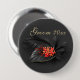 Badge Rond 10 Cm Mariage Feuille noir Jasmine rouge