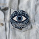This mystical button features a stylized eye with intricate blue and white swirls surrounds the pupil, symbolizing vigilance and mystery, accompanied by the bold phrase "No Kings." Finished as an oil paint art print.