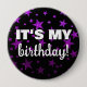 Un bouton amusant indique aux invités qui célèbre quoi. Le modèle est facile à mettre à jour de "l'anniversaire" à mariage, fête, fête, ou tout ce que vous voulez que tout le monde sache que vous dansez. Faux violet parties scintillant étoiles et confetti amp la pizzaz de ce parti UP!
