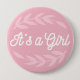 Badge Rond 10 Cm Pastel feuilles roses - C'est une fille