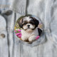 Badge Rond 10 Cm Petite Tzu Chiot Panier Fleurs